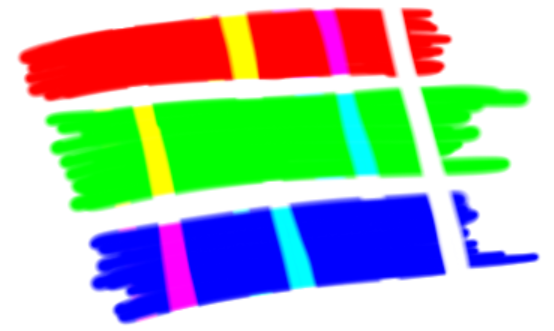横の3本線が「三原色」レイヤーにあるモノで、それ以外の縦線は「効果」レイヤーに配置してある。「効果」レイヤーの右2本は「黒」と「白」であり、彩度はゼロである。